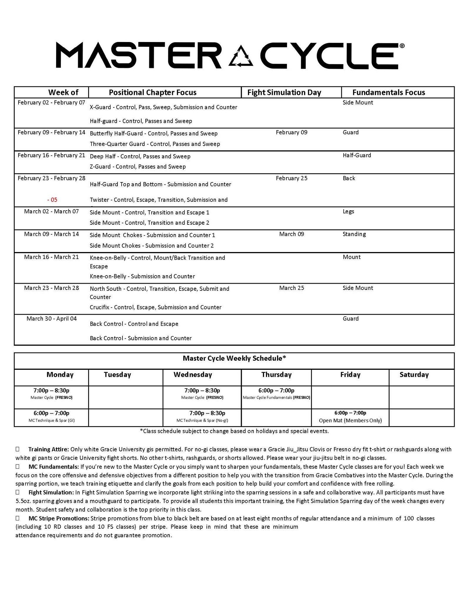Master Cycle ® Fundamentals - open to white belts with three stripes and pink belts
