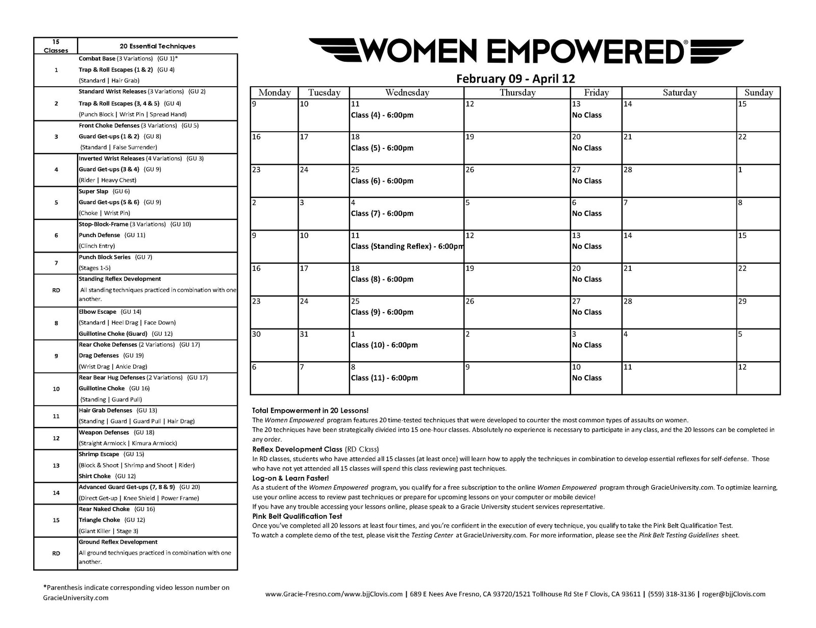 Visit www.gracie-fresno/schedule for the Fresno location schedule.